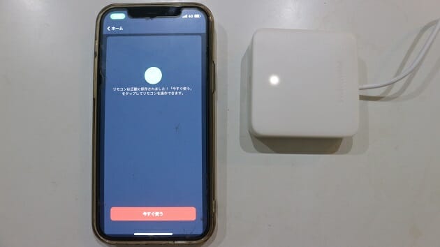 ちなみにスマートリモコンはそれ自体にエアコンやテレビを操作できるボタンが付いているわけではなく、Bluetoothで連動させてスマホで操作するためのガジェットというわけだ。