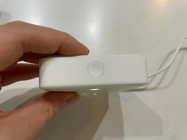 SwitchBot自体はかなり小ぶりで、手のひらに収まるぐらいのサイズ感。上部には白いボタンが付いており、裏面にはマイクロUSBを差す部分と壁掛け穴があいている。見た目は真っ白で至ってシンプル。インテリアとしても馴染みそうなデザインも人気の理由なのだろう。