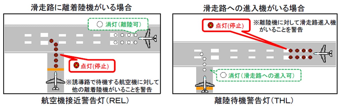 ・管制指示と独立して機能する滑走路状態表示灯(RWSL:Runway Status Lights)を主要空港(新千歳、成田、羽田、中部、大阪、関西、福岡、那覇空港)の同一滑走路で離着陸することが想定される全ての滑走路及び誘導路に導入予定。