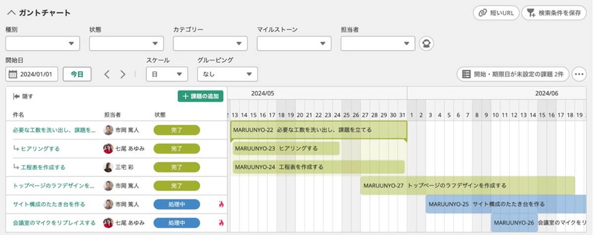 雪下さん:システム開発において、期限と作業内容を管理するために活用しています。課題の状態は「未対応」「処理中」「処理済み」「完了」の4段階をアイコンで表示でき、ガントチャートなどで一覧表示することで、メンバーの進捗状況を視覚的な理解が可能です。これにもとづき、タスクの重要度による優先順位付けと振り分けを行っています。