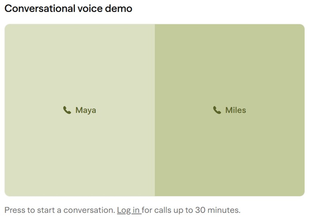 ここでは試しに「Maya」で会話してみた。デモで会話できるのは5分間。Googleアカウントなどでログインすれば、最大30分までの会話が可能だ。