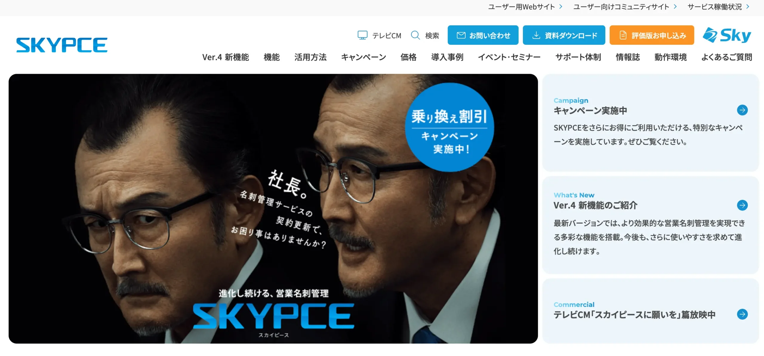 | 連携サービス | Salesforce、kintone、 SKYPCE ClientView |