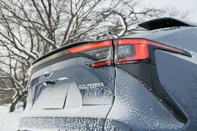 エクステリアを一見すると、ソルテラとbZ4Xの違いほとんどないように思える。フロントにスバルのアイデンティティである6角形グリルが描かれており、前後のデイライトはスバル統一のコの字型にした程度だ。つまり、bZ4Xのリバッジに近い。