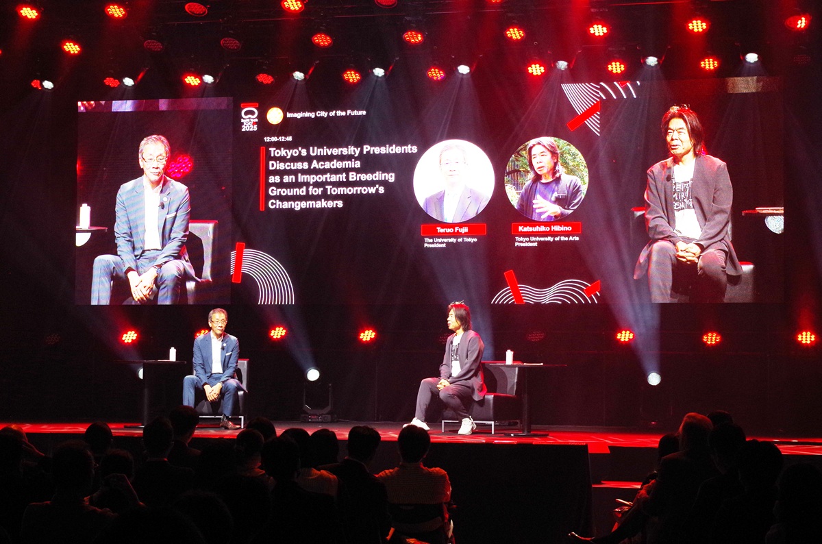 同日開催されたセッション「東京からアカデミアのリーダーが語る、未来社会の変革を担う人材育成」では、東京大学総長の藤井輝夫氏と東京藝術大学学長の日比野克彦氏が対談。生成AIの進展やグローバルな研究拠点構想を踏まえつつ、藤井氏は「大学が育てて社会に渡すという線引きには違和感がある。大学の外の人々も、もっと中に入ってきてほしい」と述べ、境界を越える知の往還が都市における創造の起点になるとした。