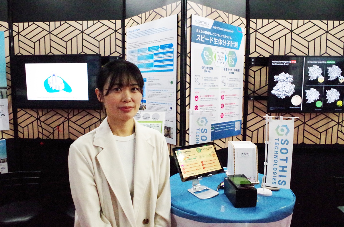 さて、アカデミアと都市との接続を具体化する取り組みとして、展示エリアでは、東京大学発スタートアップ「ソティステクノロジーズ」が、医療・食品分野の迅速検査技術を出展。従来24時間以上を要していた微生物培養試験の大幅短縮など、都市生活の中での健康・安全確保に直結する技術を提示。